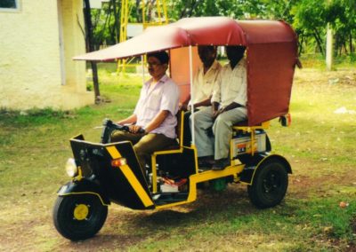 Mobility work was initiated to help increase the remuneration of rickshaw pullers who belong to the lowest economic strata of the society. As a first step, the humble cycle rickshaw was redesigned to produce an efficient and light-weight rickshaw called ‘IMPRA’ (Improved Pedal Rickshaw). To further reduce the load for rickshaw pullers, IMPRA was modified to run on a motor powered by batteries and was named ‘MAPRA’ (Motor Assisted Pedal Rickshaw). The feedback on MAPRA showed that a fully electric rickshaw was more desirable. Hence in 2000, NARI developed the world’s first fully electric three wheeler ‘ELECSHA’. Later, NARI also developed ‘MANHARA’ (Motor Assisted NARI Handicapped Rickshaw) and a completely electrified trike for handicapped people. This work on electric rickshaws was then extended to develop some battery-powered farm machinery.
